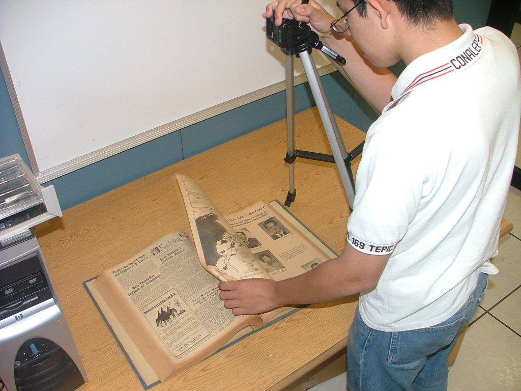 Actualmente seguimos digitalizando colecciones de periódicos regionales, así como microfilmes, videocassettes, cassettes y archivos históricos universitarios que próximamente serán integrados a la Hemeroteca Digital de Nayarit.